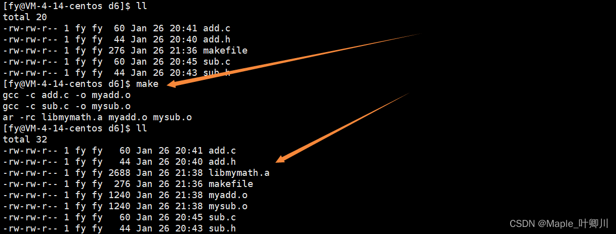 这样一个静态库就打包好了,但是使用一条条命令敲太麻烦了,可以使用 Makefile