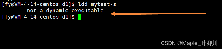 静态链接生成的可执行程序并不依赖其他库文件,此时当我们使用 ldd 命令查看该可执行程序所依赖的库文件时就会看到以下信息