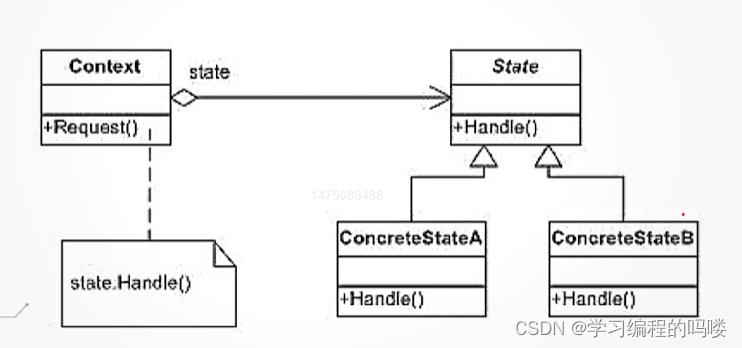 - State——定义了用于封装与Context的特定状态相关联的行为的接口