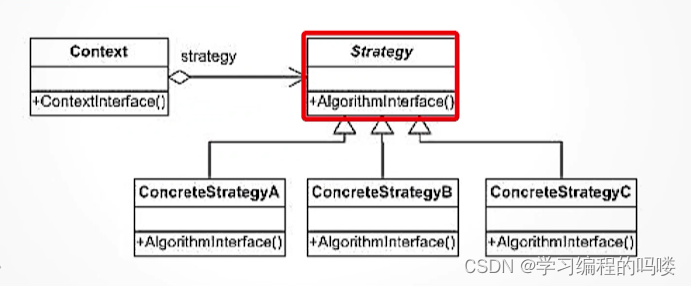 - Strategy——为所支持的算法声明一个公共接口。Context使用此接口调用由ConcereteStrategy定义的算法