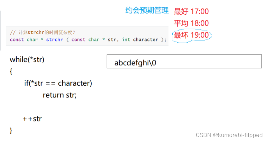 有些算法的时间复杂度存在最好、平均和最坏情况:最坏情况:任意输入规模的最大运行次数(上界)平均情况:任意输入规模的期望运行次数最好情况:任意输入规模的最小运行次数(下界)例如:在一个长度为N数组中搜索一个数据x最好情况:1次找到最坏情况:N次找到平均情况:N/2次找到在实际中一般情况关注的是算法的最坏运行情况,所以数组中搜索数据时间复杂度为O(N)![]()