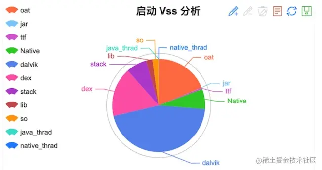 下图是 App 在 Android 7.0 上启动完成之后所占用的虚拟内存 (Vss),不同系统、不同的 App 虚拟内存的分布都不一样,,我们可以通过解析 /process/pid/smaps 文件,查看自己的 App 虚拟内存分配情况。 android.googlesource/frameworks/…