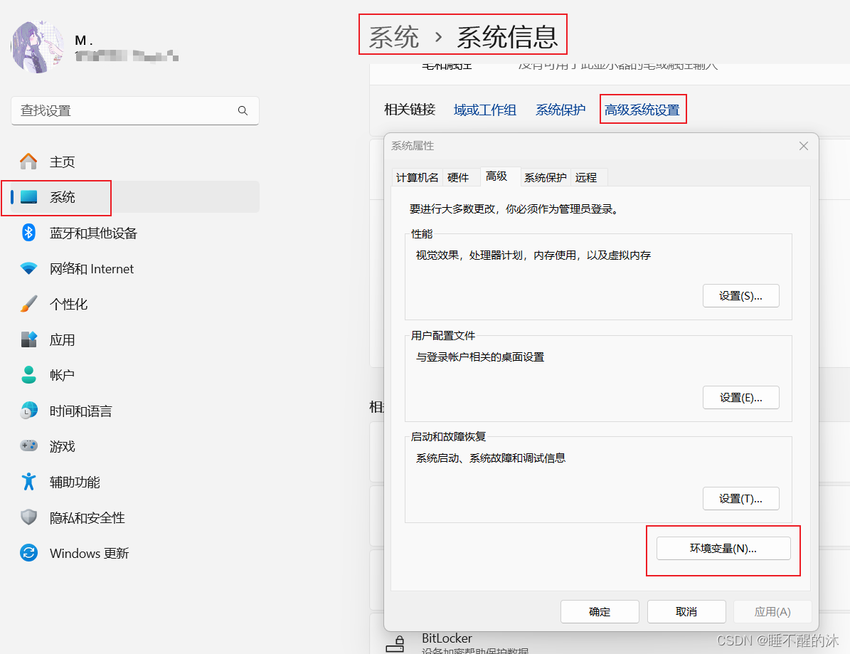win11直接搜索环境变量就可以搜到,也可以在设置>系统>系统信息>高级系统设置>环境变量找到