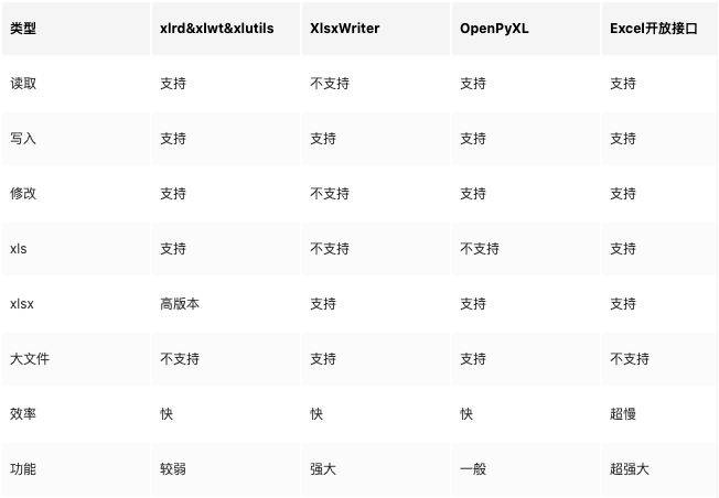 python针对excel有很多的第三方库可以用,比如xlwings、xlsxwriter、xlrd、xlwt、pandas、xlsxwriter、win32com、xlutils等等。