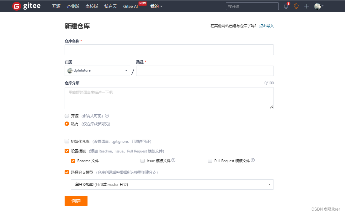 点击新建仓库之后进入: