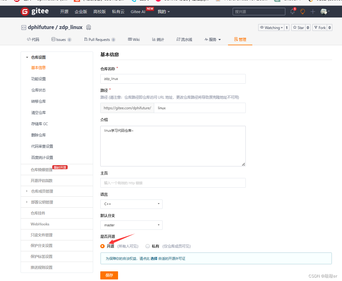 成功后记得将仓库设置为开源