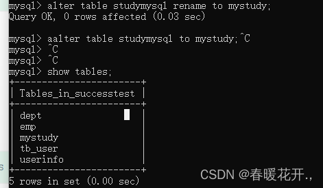 1.alter table 旧表名 rename to 新表名 ; //修改表名
