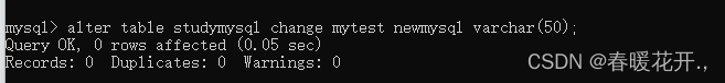 3.alter table 表名 change 旧字段名 新字段名 类型(长度) ; //修改字段名和字段类型