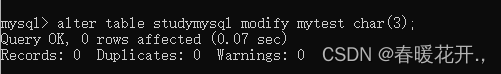 2.alter table 表名 modify 字段名 新数据类型(长度) // 修改字段数据类型