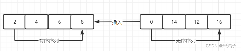 直接插入排序算法 在有序区(r[1]~r[i-1])中插入r[i],首先找到第i个记录的正确插入位置,然后将r[i]插入到有序序 列中。1、 基本思想:在插入第i个元素时,前(i-1) 个元素已经有序。(2) r[0]暂存r[i]的元素,避免了因元素的后移覆盖r[i]的值。(1)在查找嘻哈如位置的循环中r[0]起到监视哨(或者监视哨兵的作用)最好情况(正序):例如1、2、3、4、5、6。最差情况(逆序):例如6、5、4、3、2、1。比较次数:n-1 (共有n个元素)移动次数:2(n-1)时间复杂度:O(n).