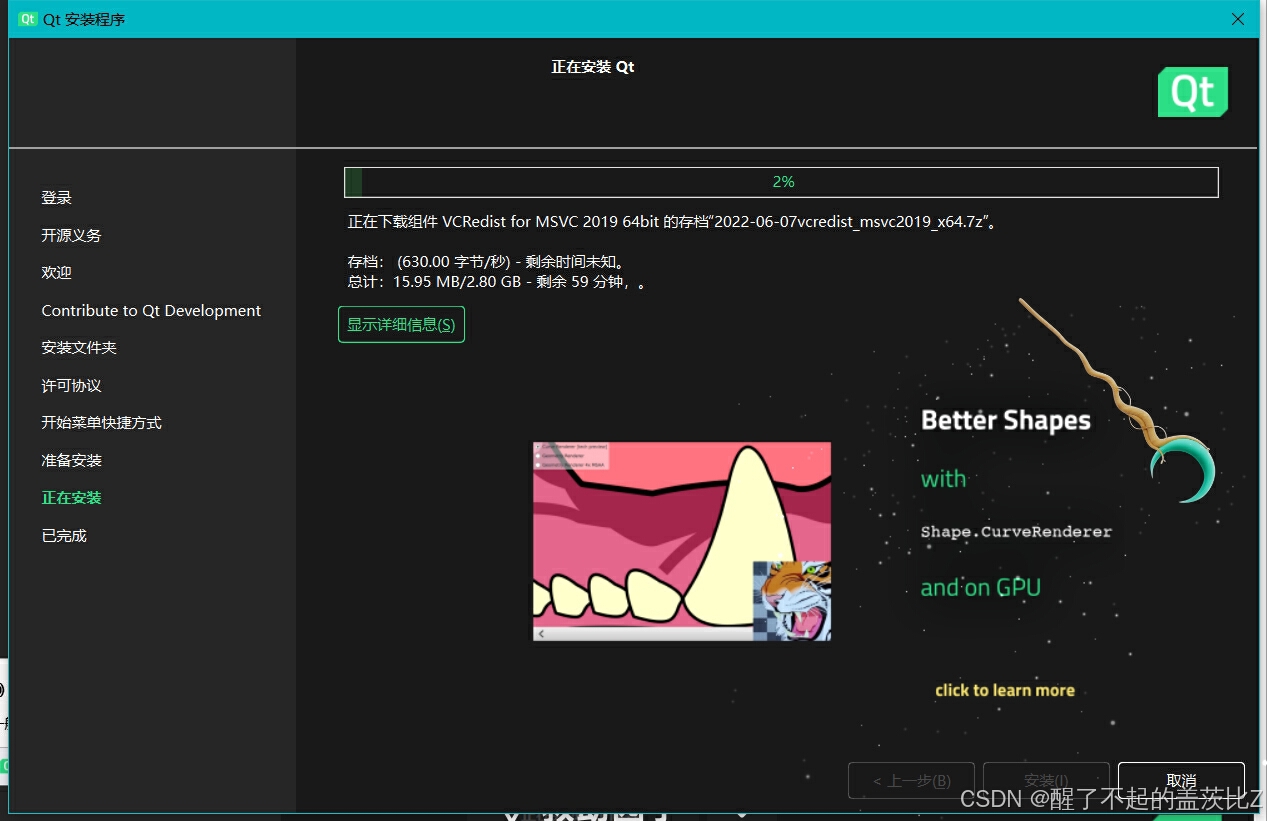 注意老生常谈的话题,路径不要中文和空格。安装选项笔者选择的是桌面开发版本,初学者建议不要选择第一个自定义安装,他会让你自行选择组件等,把握不好容易寄,而且安装了桌面开发版本以后需要什么组件也能自己加的。