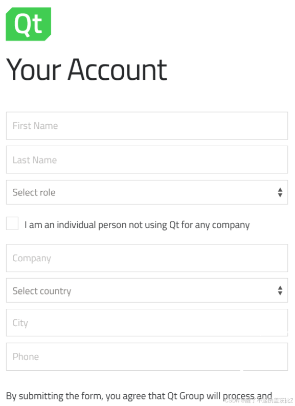 Qt方会给你发送一个邮件,点击login.qt.io开头这个链接跳转到填写信息的页面,
