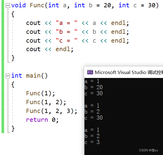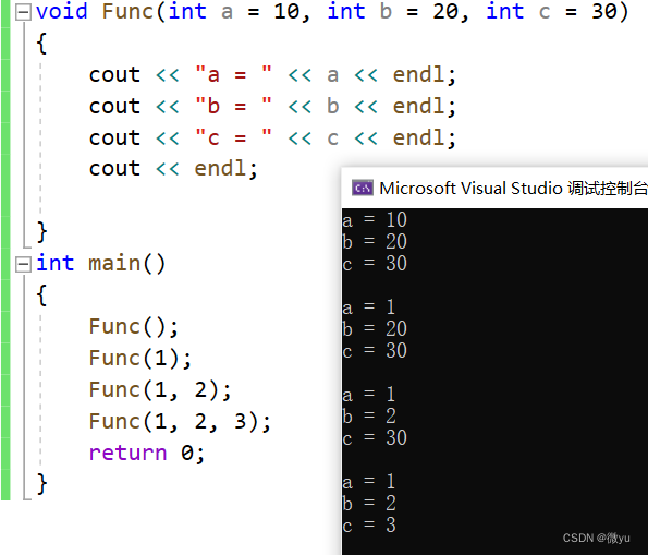 全缺省参数必须从左往右依次来给出,不能说给b的值不给a![]()