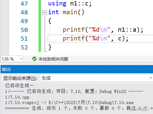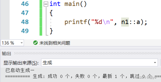 这里报错了,可是我上面明明定义了一个a,在命名空间n1中啊,那下面就介绍命名空间的使用方式。