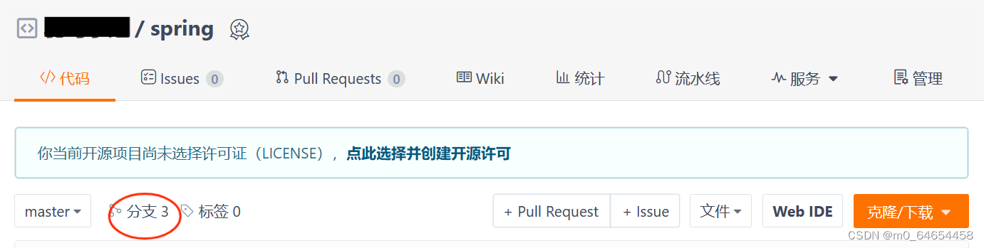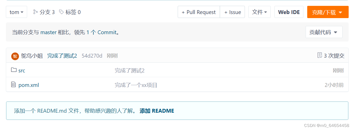 此时创建的分支和master分支的内容一致,我们后续的操作可以在master分支以外的分支上操作