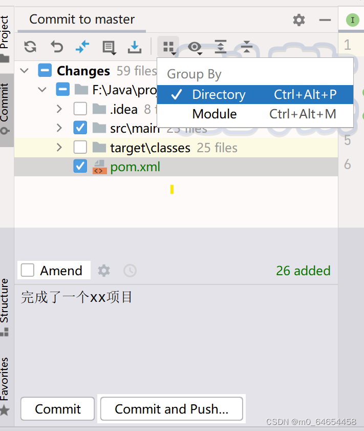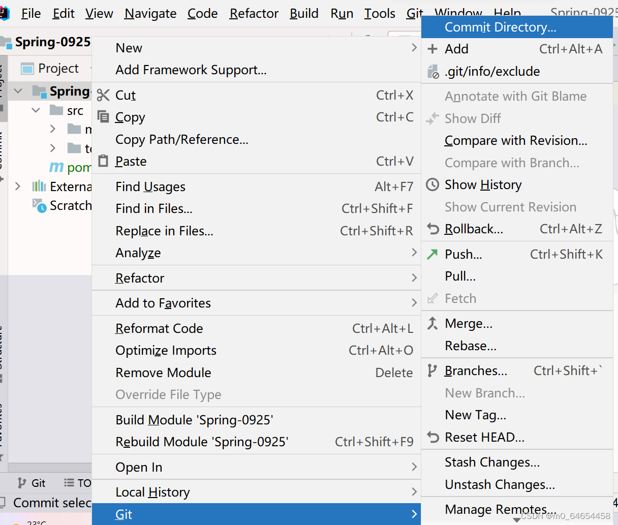 选中要添加到暂存区的项目,右键-->Git-->Commit Directory...