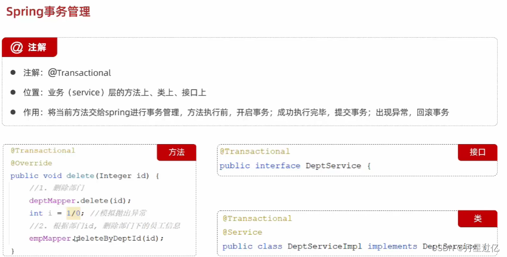 @Transactional(rollbackFor = Exception.class)//Spring 事务管理