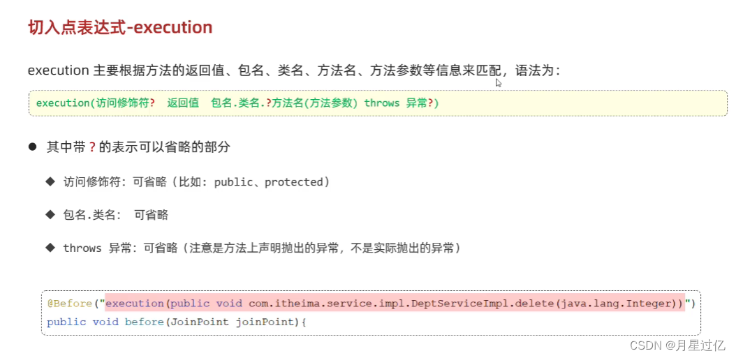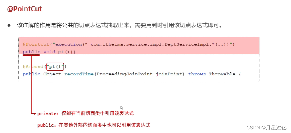 @Pointcut("execution(* com.itheima.service.impl.DeptServiceImpl.*(..))")