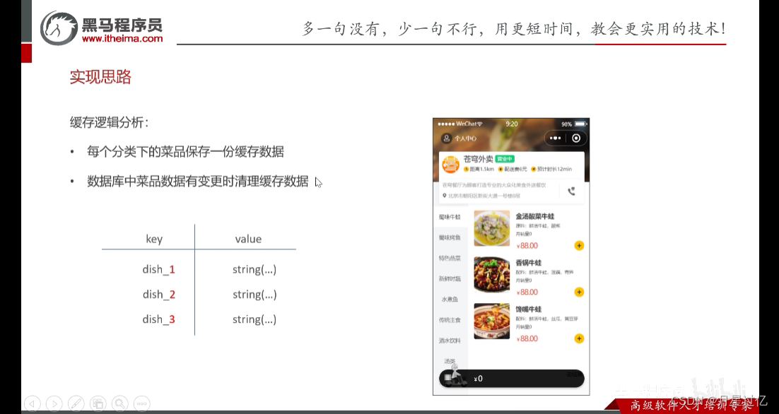 将菜品集合序列化后缓存入redis key为每个分类的id