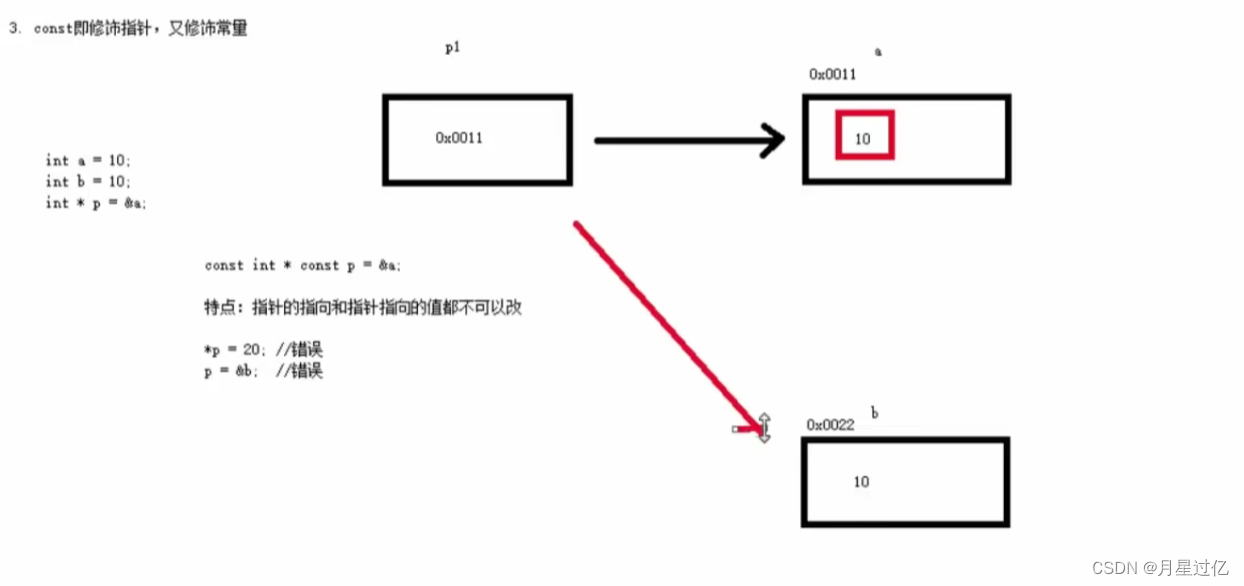 //指针指向和指针指向的值都不能修改,只能读取