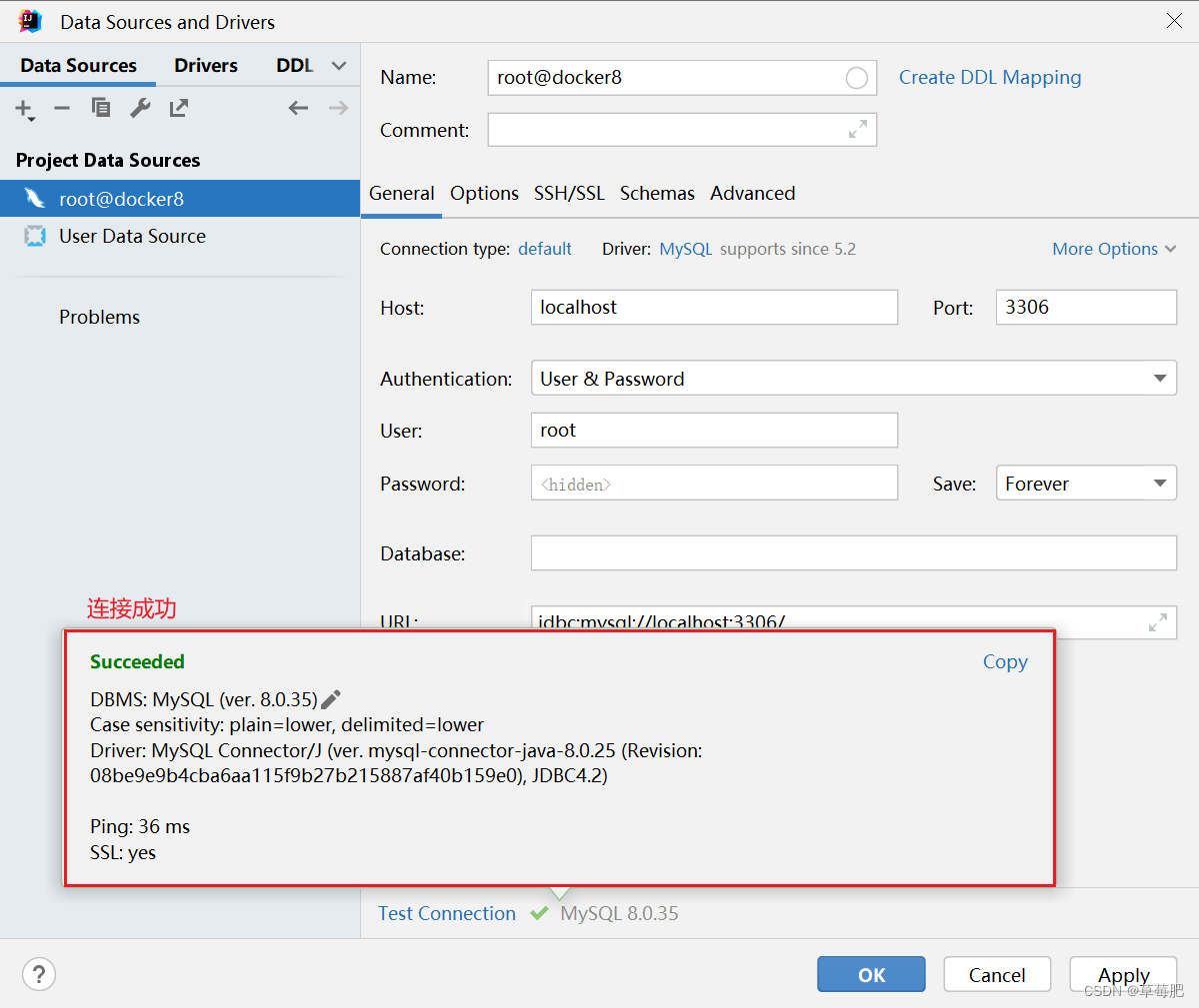 5、配置完成之后,点击测试连接,查看是否连接成功