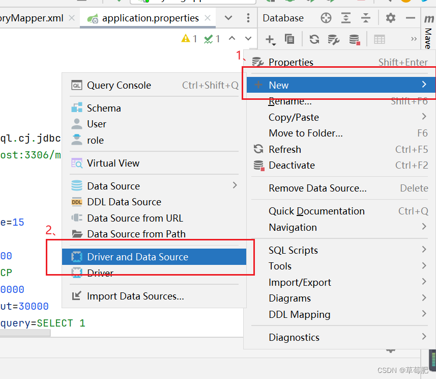 打开idea,右上角有数据库侧边栏,打开侧边栏点击加号->数据源,可以看到支持很多数据库,选择mysql