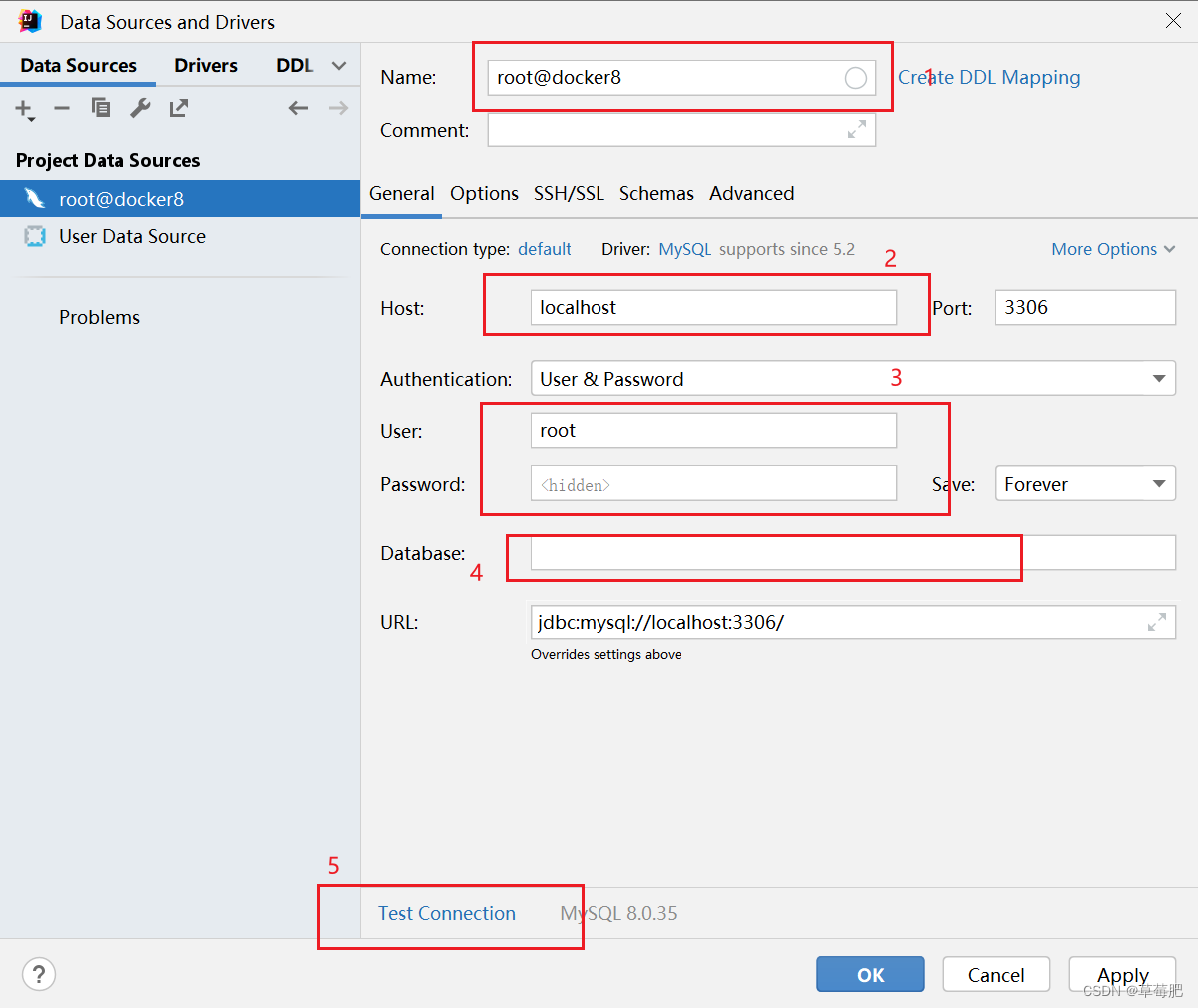 2、连接的数据库地址和端口号(连接本地的数据库就默认为localhost,端口号为3306)