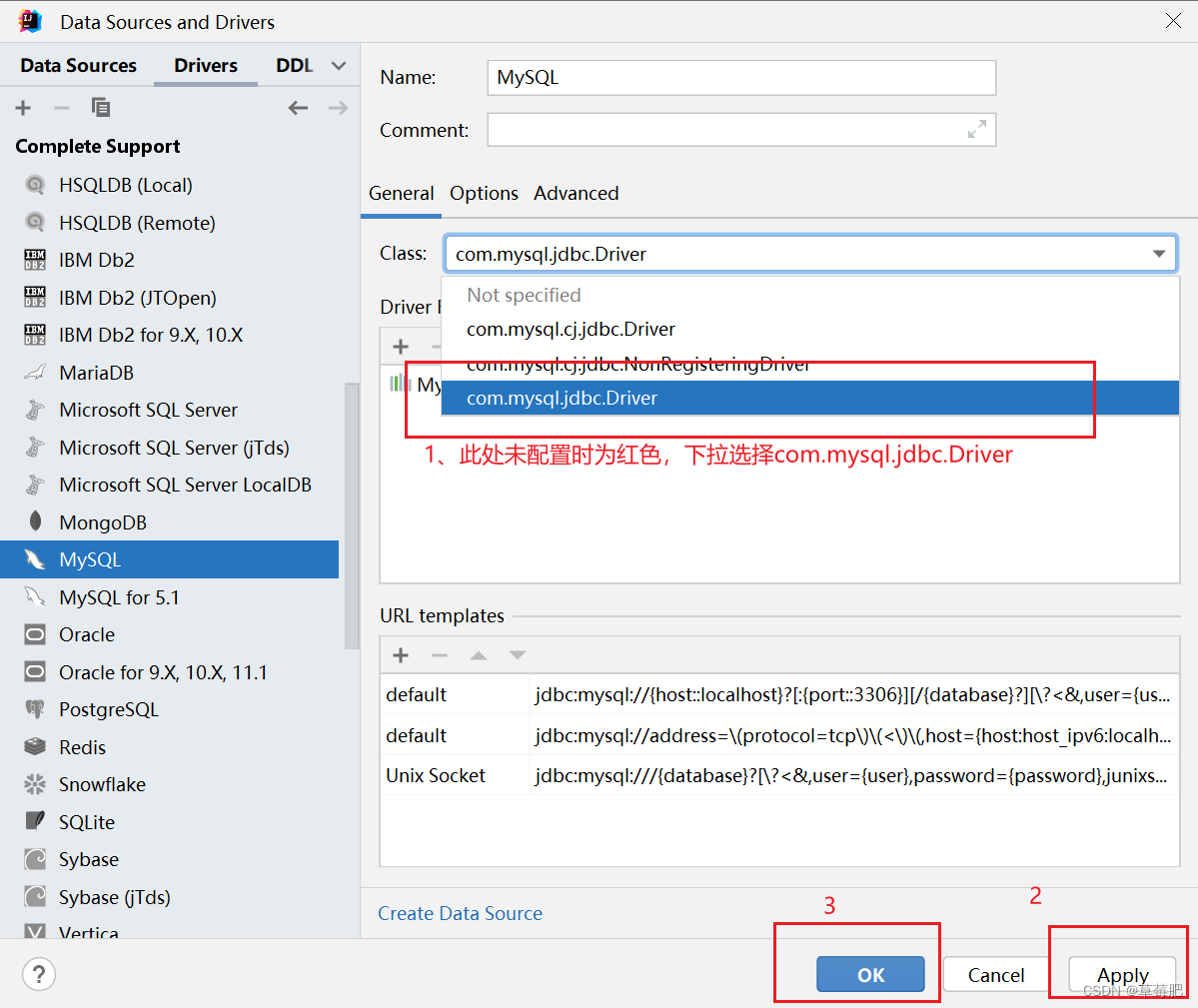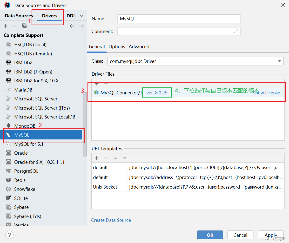 使用前需要下载驱动程序,不然连接数据库会报错。找到mysql,点击驱动程序文件下面的加号,点击提供的驱动程序,选择mysql驱动程序(mysql connector/J)