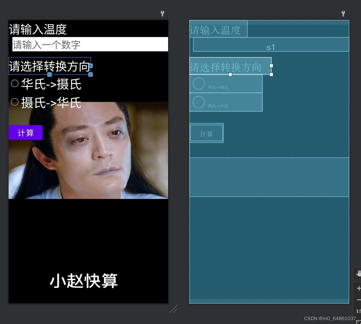 成为一个成熟的设计员,成功完成老师作业。输入温度选择转换方向计算得出转化后温度,补充知识点加入个性化图片