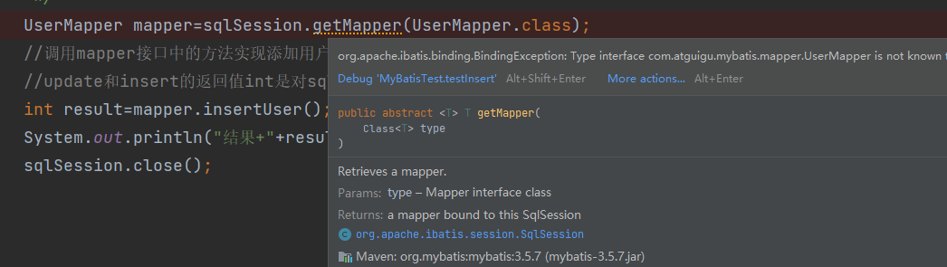 org.apache.ibatis.binding.BindingException: Type interface com.atguigu.mybatis.mapper.UserMapper is not known to the MapperRegistry.