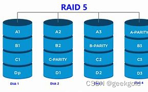 - 校验码/纠删码:通过分布式校验的方式,将校验数据分别存储在不同的磁盘,raid阵列的盘即存放数据也存放校验数据