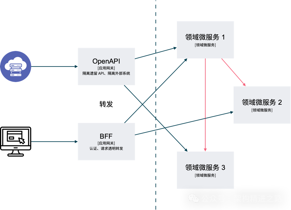 在上面这些问题中,最让人关心的问题倒不是响应用户请求流量的服务叫是 ServiceA 还是 ServiceB,而是它应该直接转发数据还是需要为每个 API 重新编写一次实现,并调用后端 API。