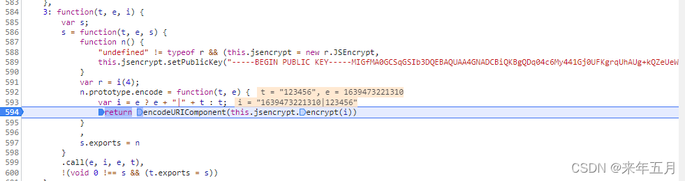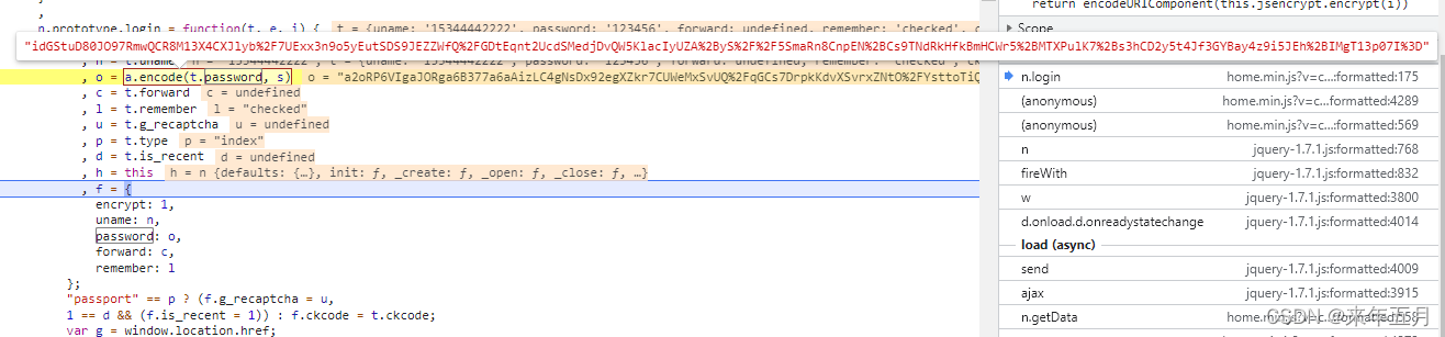 然后跟进e.encode函数,这是已经能知晓是rsa加密了,并且发现密码拼接了时间戳