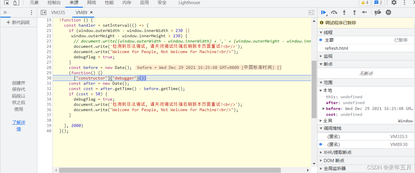 在次刷新页面,就发现已经过了反调