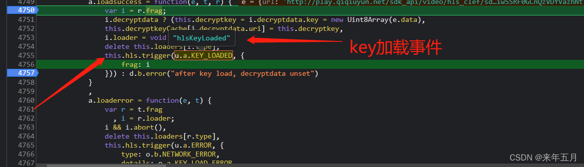 点开_event ,里面的都是指向同一个函数,直接跟进去hlsFragLoaded函数即可。
