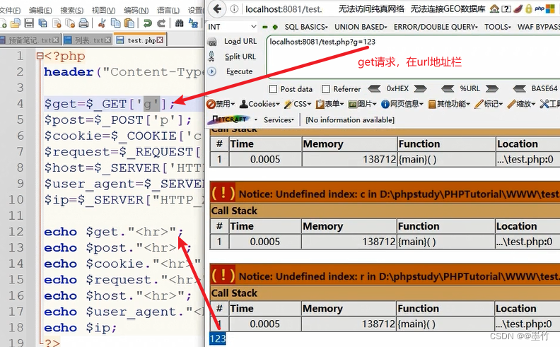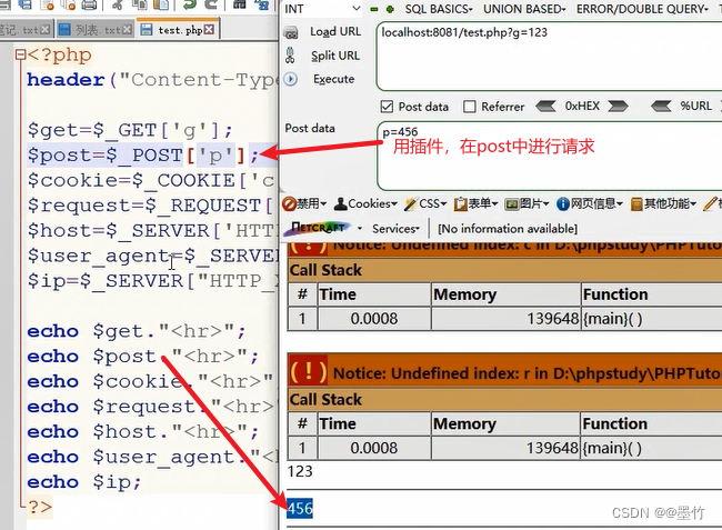 post:利用post传参工具或者在数据包底部进行传参