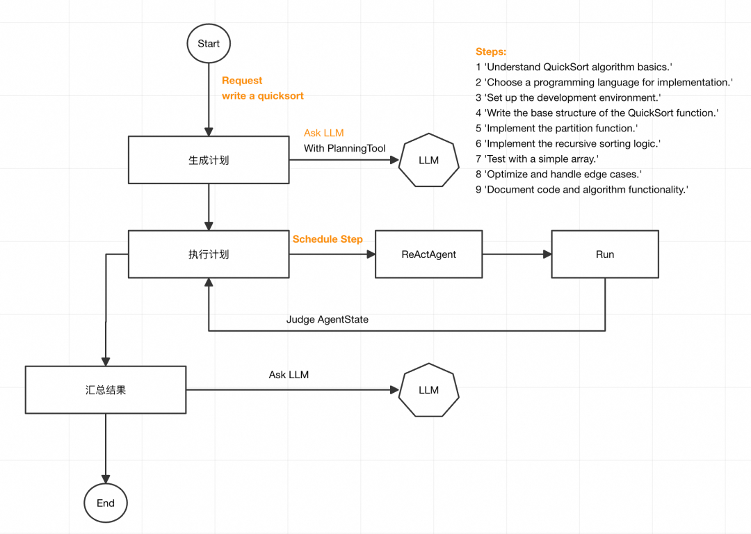 前文提到的Planning的问题,对于复杂问题的规划,往往会遇到困难或者因为LLM的幻觉,生成不合理的步骤。 虽然ReActAgent有时可以通过推理,行动,观察来为Planning的不合理计划兜底, 但是会降低Agent的效率。