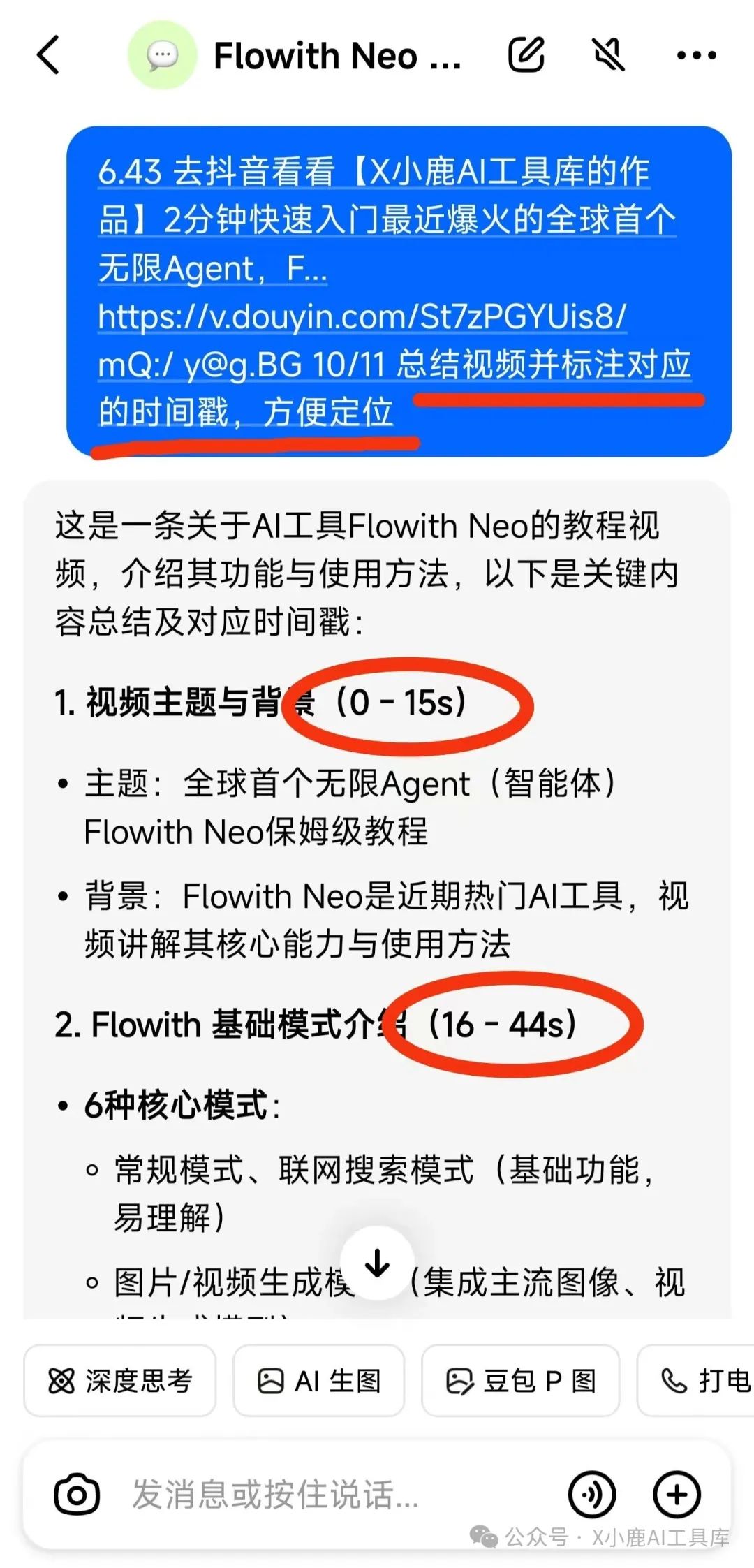 你也可以把视频链接发给豆包,并加上一句“总结视频并标注对应的时间戳,方便定位”。