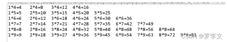 System.out.print(j+"*"+i+"="+i*j+"\t");