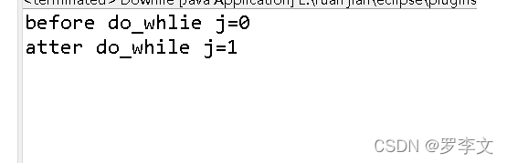 可以通过设置起始循环条件不成立的循环语句来观察 while 和 do...while 的不同。将变量i初值设置为0,然后循环表达式设置为i>1,显然循环条件不成立。循环体执行的是对变量j的加1这算,通过输出变量j在循环前的值和循环后的值进行比较。