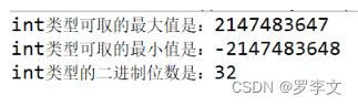 System.out.println("int类型可取的最大值是:" + maxint); // 将常量值输出
