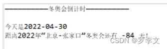 * 输出2022年冬奥会倒计时(暂定冬奥会举办时间为2022年2月2日)