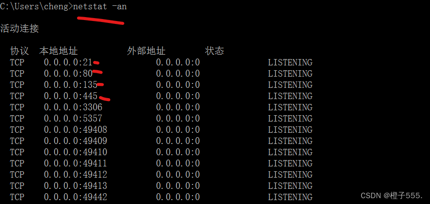 还是用win10的虚拟机(192.168.184.141)查看开启的端口netstat -an