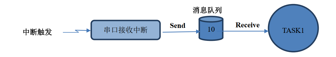 实际应用中, 建议不要在中断中实现消息处理, 用户可以在中断服务程序里面发送消息通知任务, 在任务中实现消息处理, 这样可以有效地保证中断服务程序的实时响应。同时此任务也需要设置为高优先级, 以便退出中断函数后任务可以得到及时执行。