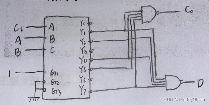 根据(1)的真值表可知Co、D的表达式分别为: