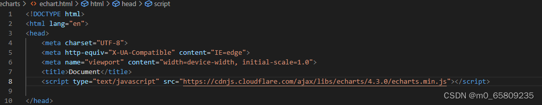 1.(推荐使用)可以从菜鸟教程发布的网站下载文件到本地引用cdn.staticfile.org/echarts/4.7.0/echarts.min.js