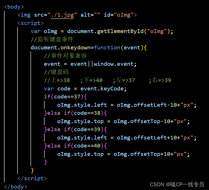 这是我所学到的用JS键盘事件来控制图片移动,所以我要分享给你们,希望可以帮助到你们。