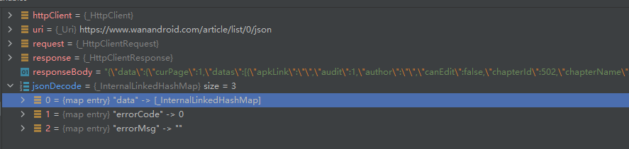 第三层(data/datas):apkLink(String),audit(int),author(String),canEdit(bool),chapterId(int),chapterName(String),collect(bool),courseId(int),desc(String),descMd(String),envelopePic(String),fresh(bool),host(String),id(int),link(String),niceDate(String),niceShareDate(String),origin(String),prefix(String),projectLink(String),publishTime(int),realSuperChapterId(int),selfVisible(int),shareDate(int),shareUser(String),superChapterId(int),superChapterName(String),tags(数据集合类),title(String),type(int),userId(int),visible(int),zan(int)