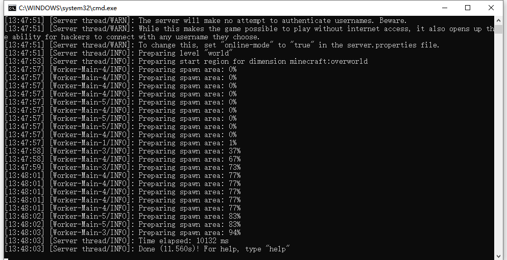 重新点击.bat文件,即可打开服务器。