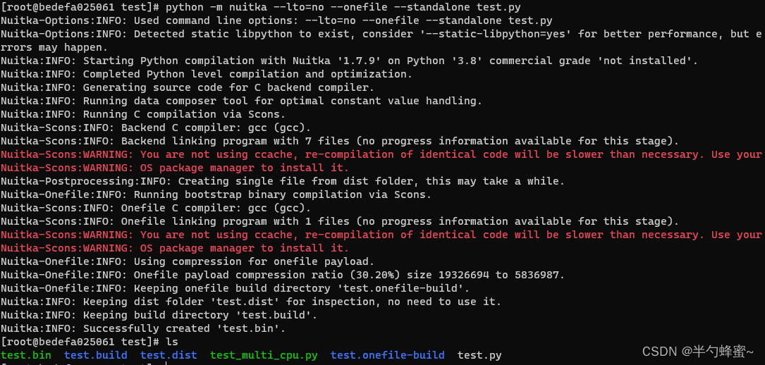 然后,我们要把当前的test.py文件通过nuitka转化为C的二进制文件。